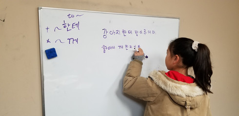 그동안 배운 존댓말/반말 어휘들을 이용해서 교재 5과에 나오는 ~에게, ~한테, 께/ 주다, 드리다 사용법 연습을 했고, 아직도 주격/목적격 어미를 헷갈려 해서 다시 한번 복습 했습니다.