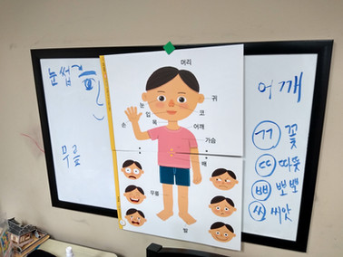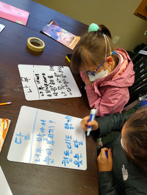 1교시 숙제검사 - 숙제 열심히 해온 친구들을 칭찬해주었습니다. 일기 속 단어와 표현 배우기 - 재미있었다, 갈 것이다, 할 것이다 시의 개념, 동시의 예 2교시 나만의 동시 써보기 동시 쓸 배경 그림 그리고 색칠하기 - 다음주 그 위에 완성된 동시를 적을거예요. 받침, 쌍자음 단어 발음과 문장적용 예 3교시 할로윈관련활동 - 호박만들기, 캔디봉투꾸미기 외 협조말씀 - 숙제로 그림일기를 계속 해오면 됩니다. 공책을 교실에 두고 간 친구들은 LETTER종이에 대신 그림일기를 써오거나, 또는 한글책3권 읽기 숙제를 해보길 권해주세요. 궁금하신 점이나 수업관련해서 의견있으시면 말씀해주세요. 감사합니다. 강민경드림